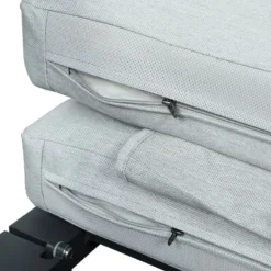 - Coussins moelleux de couleur gris-beige d’une épaisseur d’environ 9 cm.