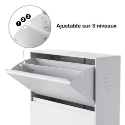 Design intelligent : les tiroirs sont équipés d’étagères réglables et amovibles qui permettent un stockage flexible des chaussures de différentes tailles.