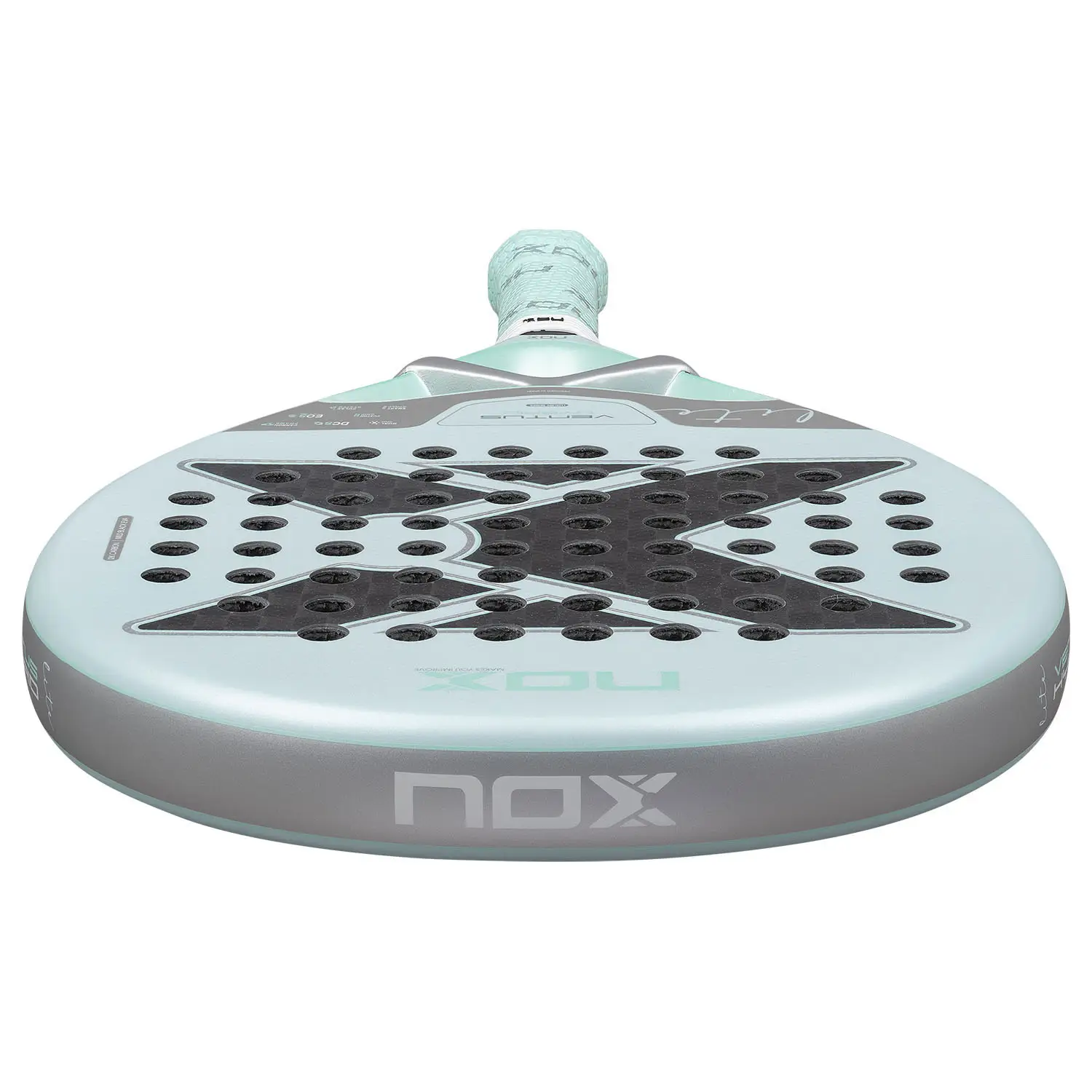 Le  cadre 100 % carbone offre robustesse et durabilité, tandis que le noyau MLD Black EVA offre une sensation de fermeté et une sortie de balle exceptionnelle. Ses faces en fibre de carbone 12K offrent stabilité et puissance, pour des performances constantes, même sur les points les plus exigeants.