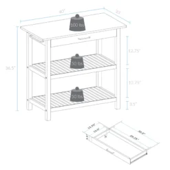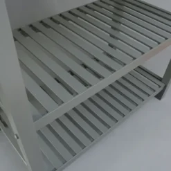 Depuis le haut de l’étagère supérieure, la distance au sol est de 19,4″. De la partie inférieure de l’étagère, la distance au sol est de 17,8″.