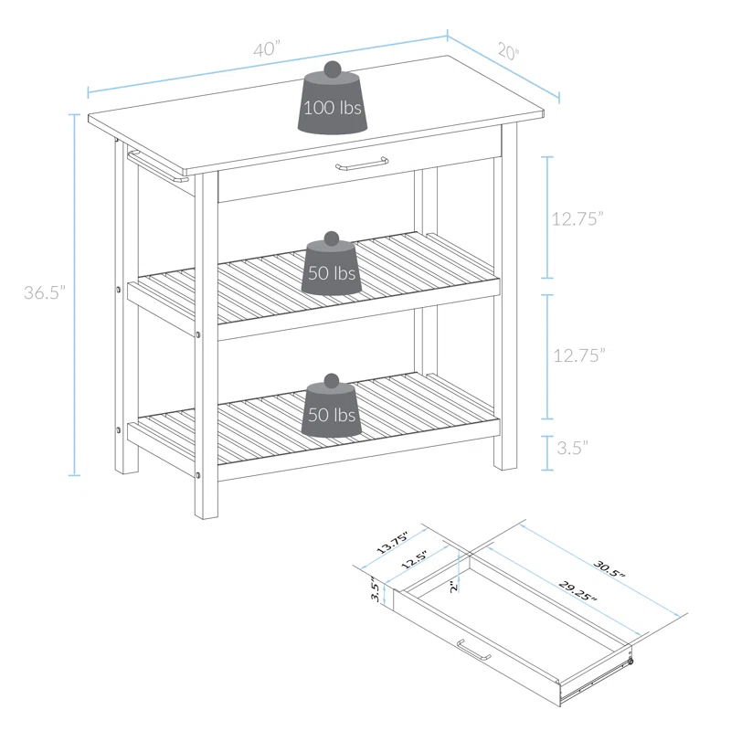 Capacité de charge du tiroir : 51 livres